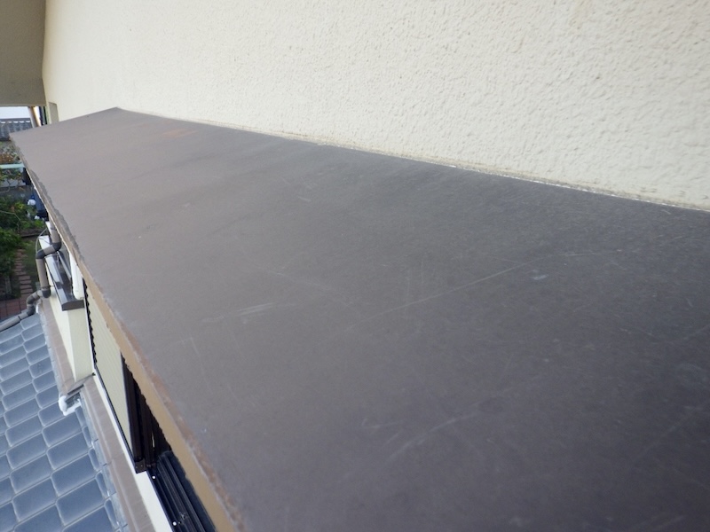 経年劣化した霧よけは下地(塗装面)が傷んでいます。