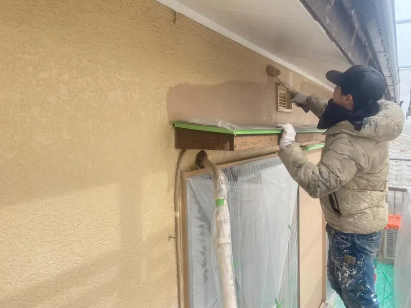 塗装前の養生と外壁塗装 中塗り工程をレポート!|大阪府大阪狭山市
