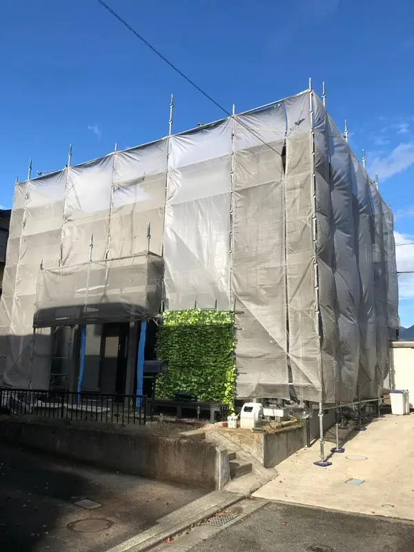 大阪府堺市 外壁塗装、屋根塗装 仮説足場設置 メッシュシート