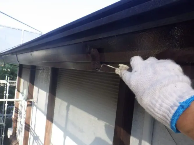 大阪府堺市の屋根葺き替え工事の続きを現場レポートします。今回は雨樋の塗装作業をご紹介していきます。屋根の葺き替えが完了して最後の作業となります。屋根工事は足場を設置していますので、足場が必要な工事はできるだけ同じタイミングで行うことをおすすめします。