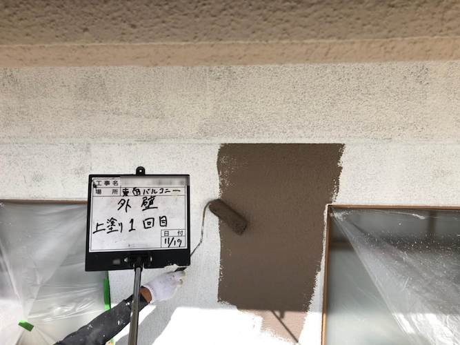 大阪府八尾市 マンション外装工事 外壁の上塗り塗装