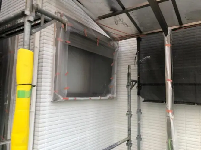 外壁を塗装する時は窓も養生してしまい塞いでしまっていますので、作業中はこちらから出入りすることができません。