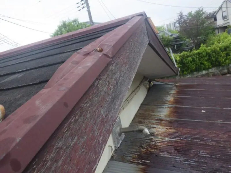 こちらの現場はスレートの他にトタンの屋根もあり、かなり錆がでてしまっている状態です。