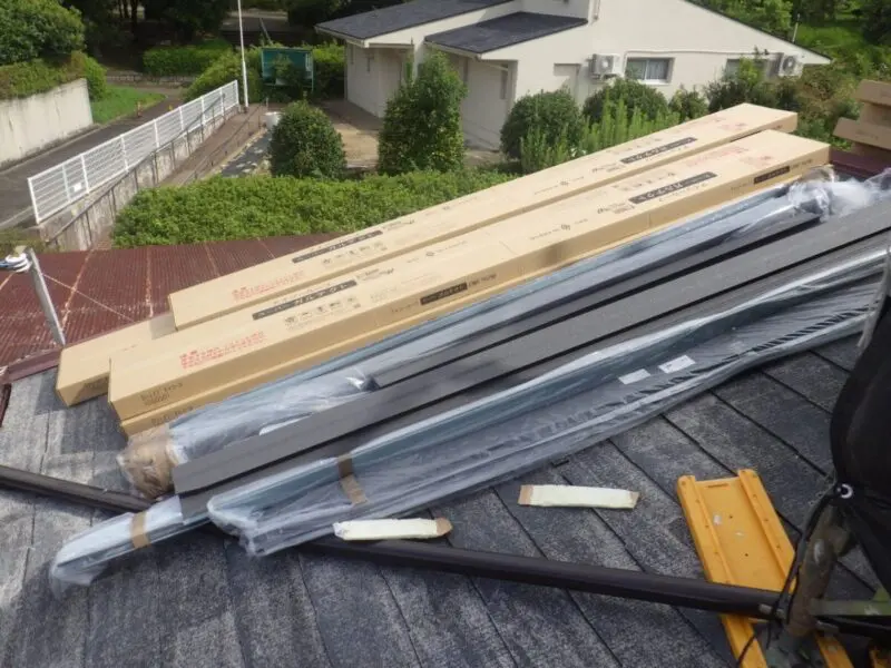 大阪府堺市南区の屋根カバー工法の現場にて役物取り付けと屋根材葺きを行いました。