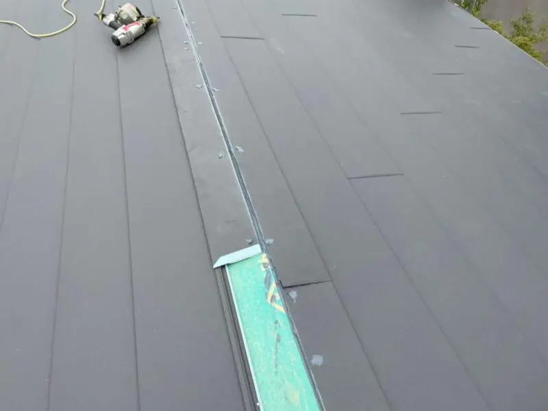 大阪府堺市南区の屋根カバー工法の現場にて棟板金の取り付けを行いました。