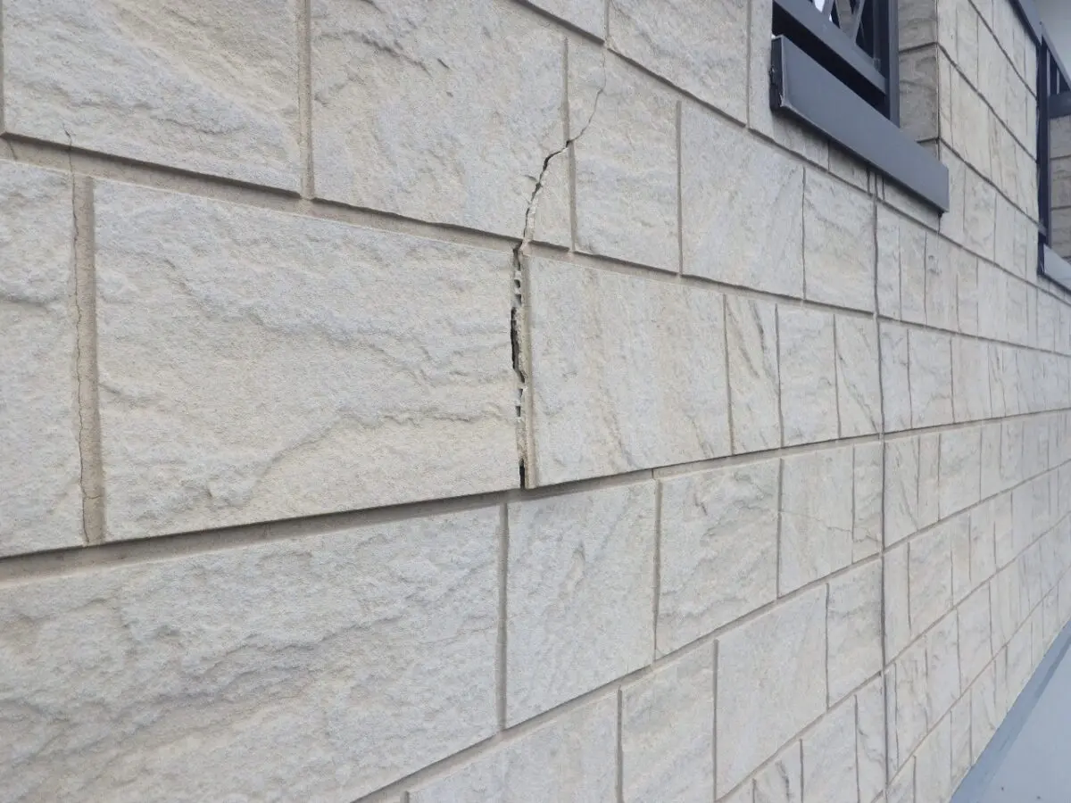 ご依頼いただいたお家のサイディングは複数箇所ひび割れが生じており、サイディングが浮いてしまっているところがありました。