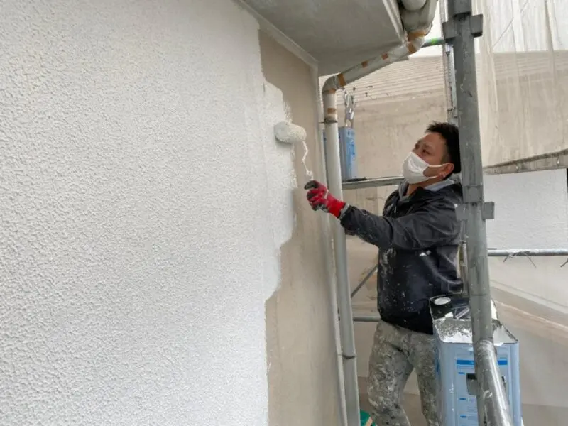 こちらの現場はさらに塗膜の密着性を高めるためにシーラーを塗り重ねていきます。塗装は下地への密着性がなければ短期間で剥がれてしまいますから、下地の状態に合わせて適した施工をする必要があります。