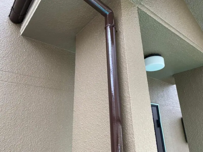 大阪府河内長野市の外壁塗装工事にて付帯部塗装の縦樋のケレン〜上塗りを行いました。前回の現場レポートは外壁の仕上げ塗装です。まだ見ていない方はぜひ下のページもご覧ください。