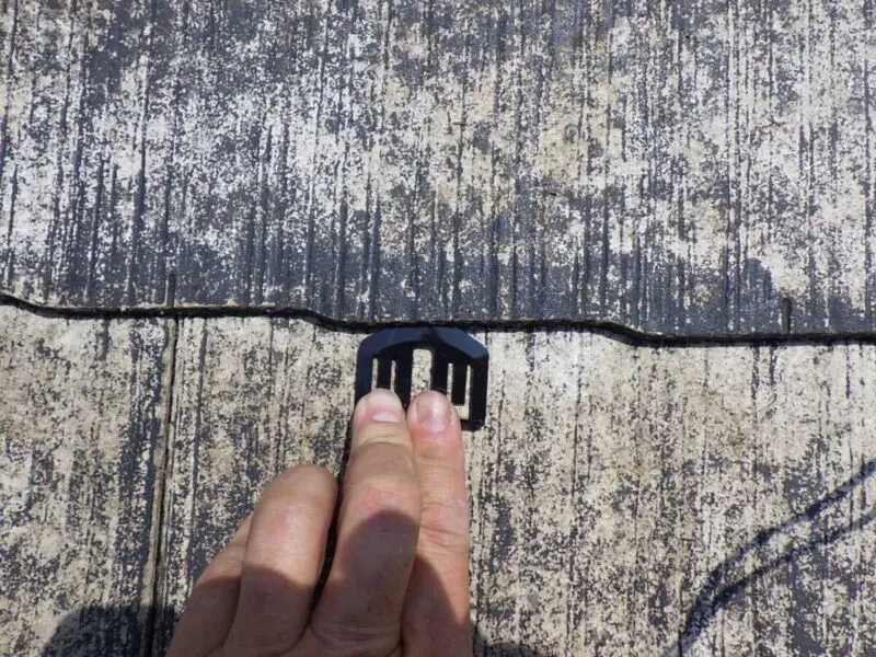 タスペーサーを差し込めばこんなふうに屋根材で隠れてしまいますので、塗装後も目立つことはありません。
