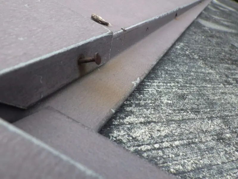 棟板金は貫板という下地に釘を打ち込んで固定しています。風雨や太陽光にさらされているため、経年劣化で釘が抜けていることがあり、台風など強風が吹く時期になると棟板金が飛ばされてしまう被害が多く起きています。