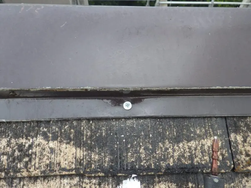 棟板金のビス打ちとシール処理とスレート補修を行いました。大阪狭山市O様邸