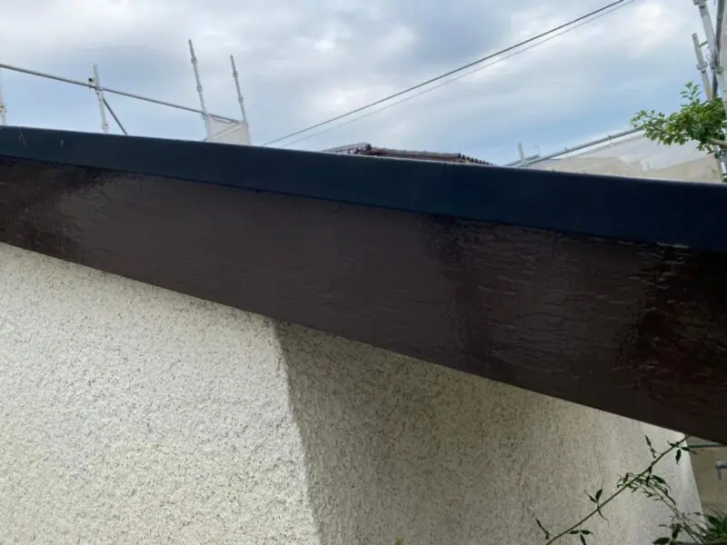 また、破風板の継ぎ目はシーリングを打って隙間を塞ぎます。下地処理などが完了したら上塗り剤で2回塗装します。F様邸の破風板はブラウンで仕上げました。