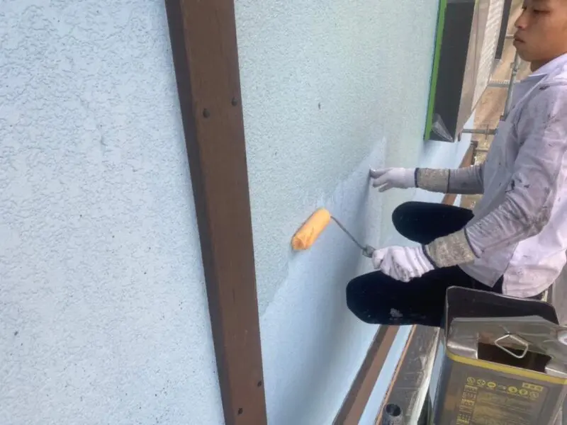 外壁の下塗りを行いました!下塗りにはシーラーを塗っています。