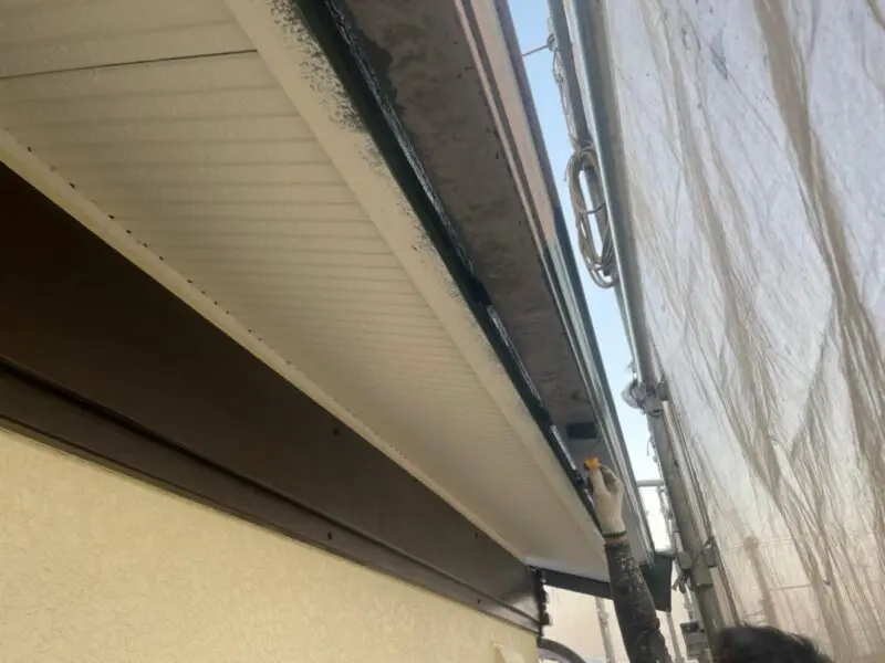 ケレン後は上塗りです。軒樋の接合部は経年劣化で隙間が生じやすいですので、もし不具合がある場合は、塗装前に補修を行っておく必要があります。