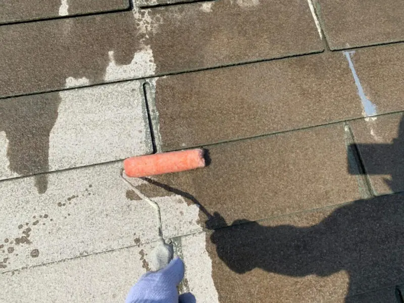 大阪府泉南郡熊取町 T様邸 屋根・外壁塗装工事 スレート屋根の下塗り ファイン浸透シーラー塗布