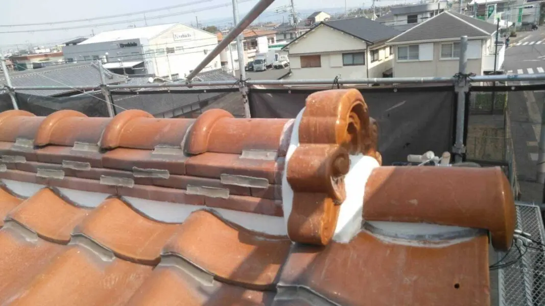 瓦屋根の漆喰工事は、重ね塗りでは行えません。