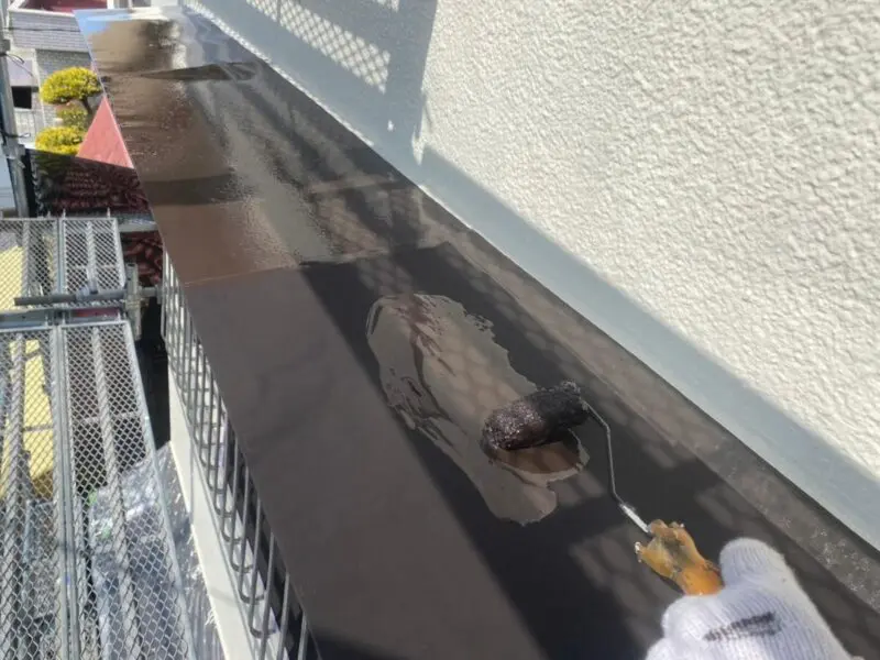 下地処理が完了したら上塗材で霧除けを仕上げていきます!