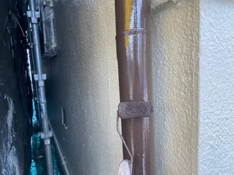 【縦樋の上塗り 付帯部も塗装が必要です!】