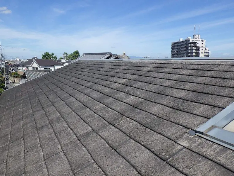 大阪府堺市 N様邸 屋根塗装・外壁塗装工事 施工前の屋根とスレート塗装の時期に