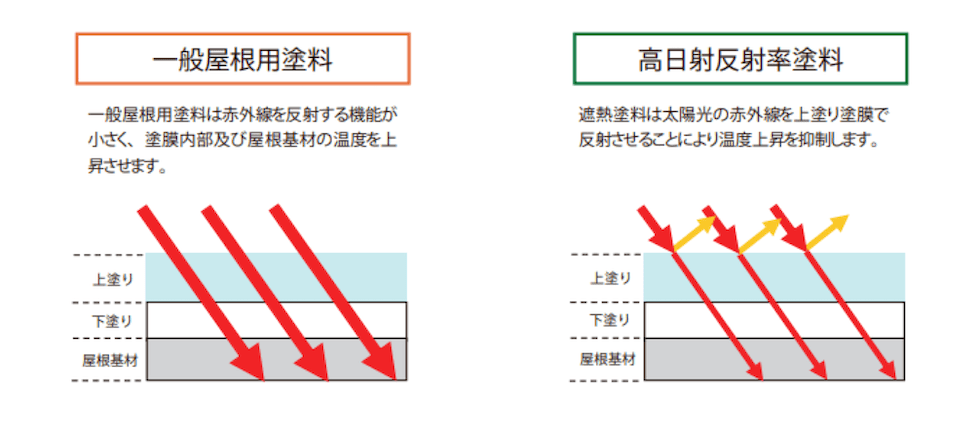 効率よく反射させることにより、屋根の温度上昇を軽減させる塗料です。